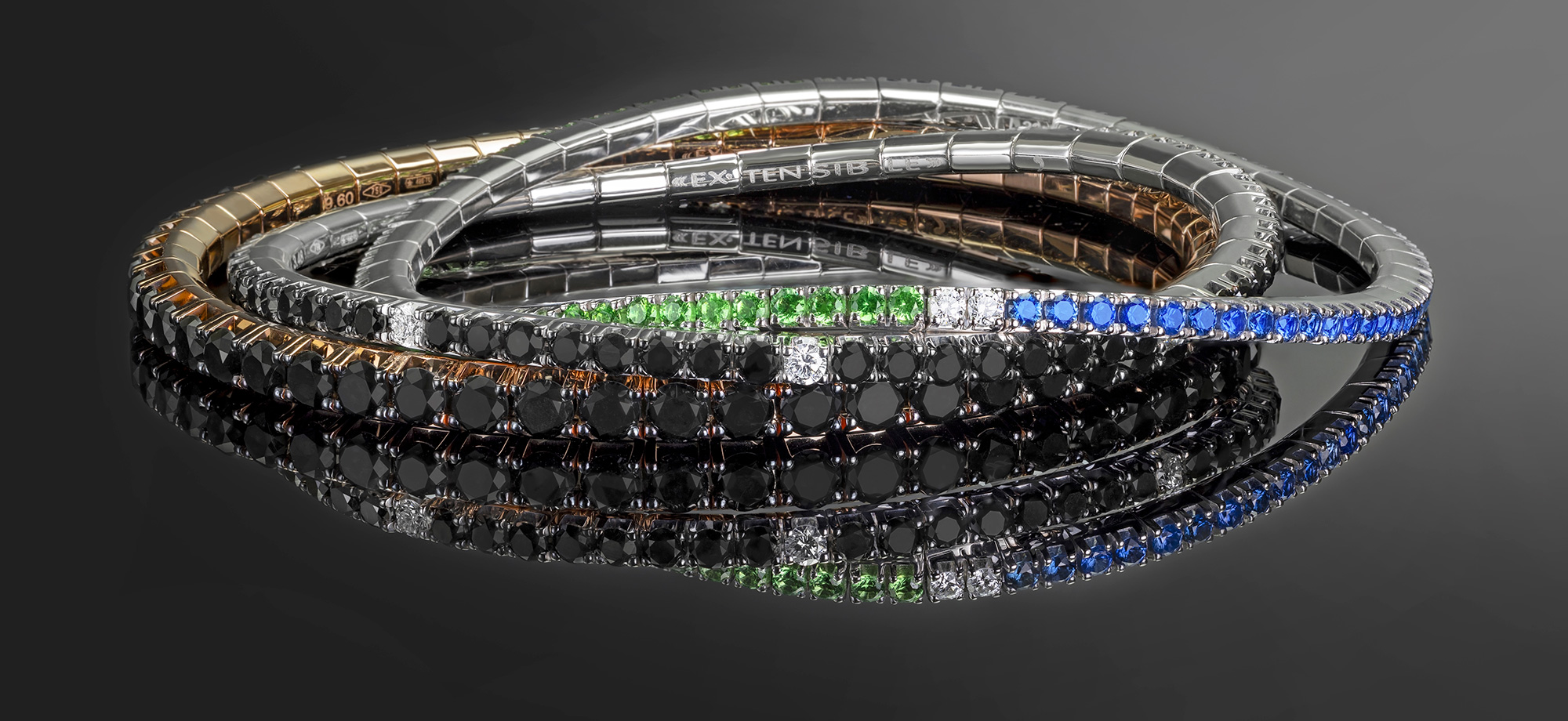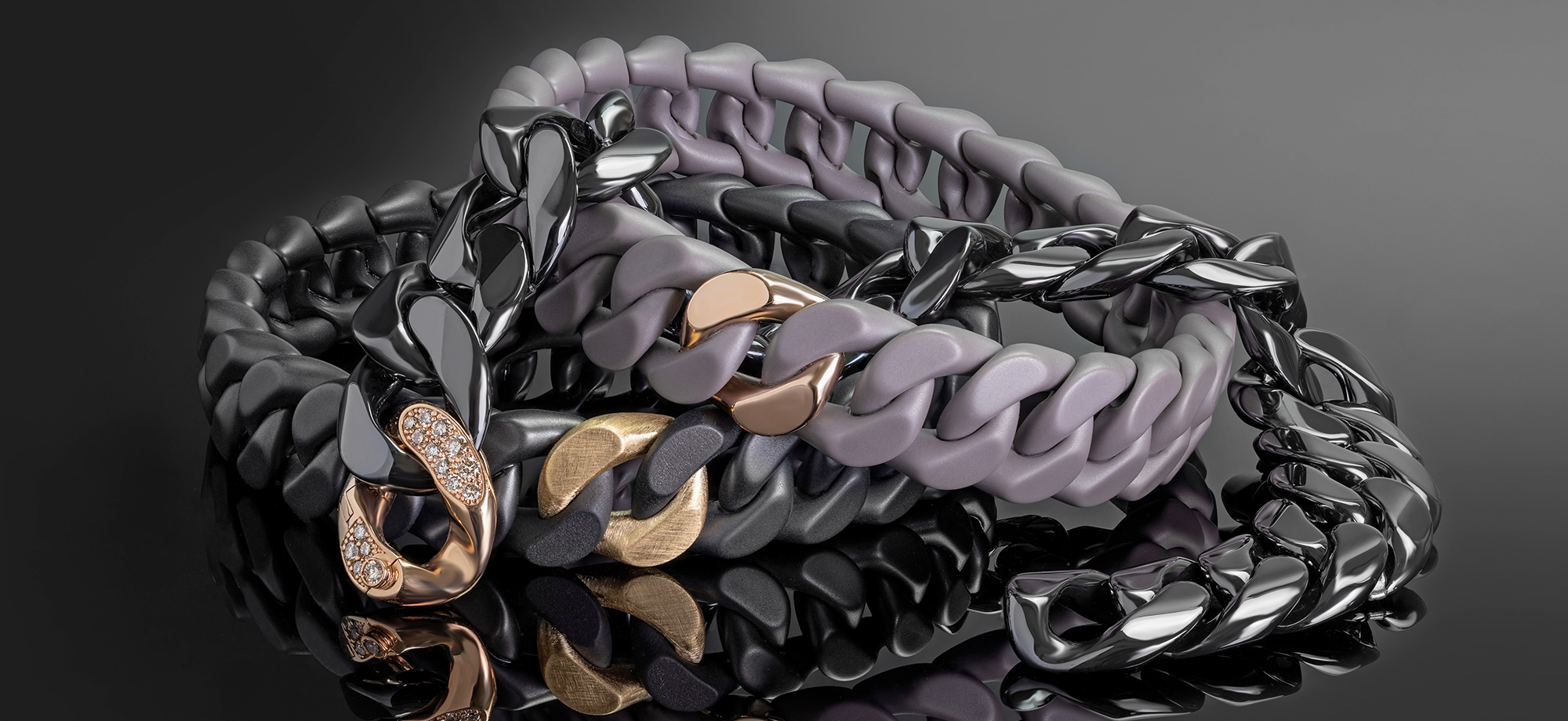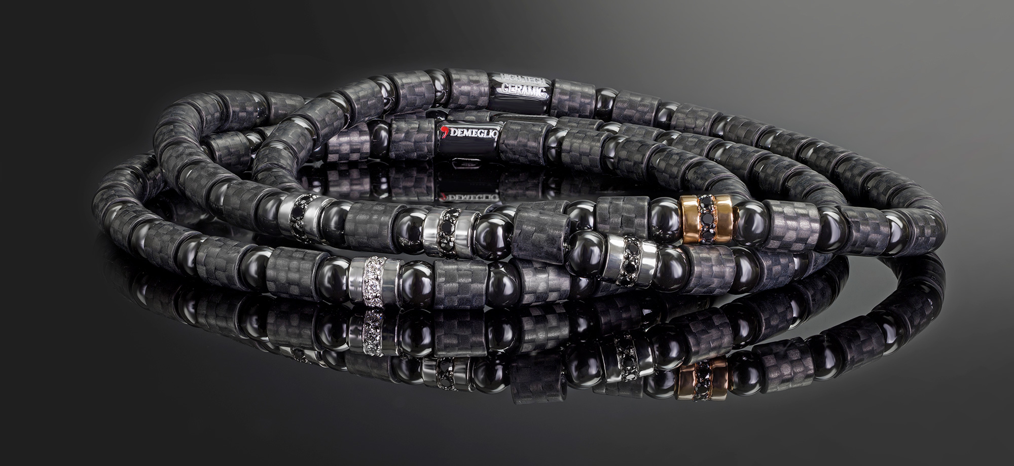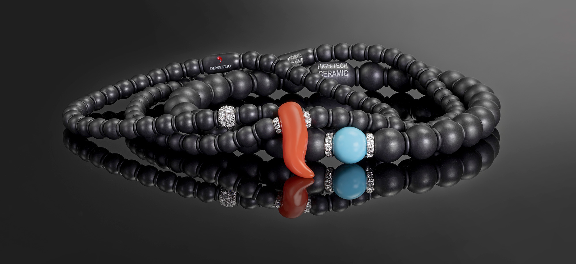 Bracciale pura grande luce in ceramica nera lucida con 7 elemento luce diamanti bianchi oro bianco alternati misura uomo