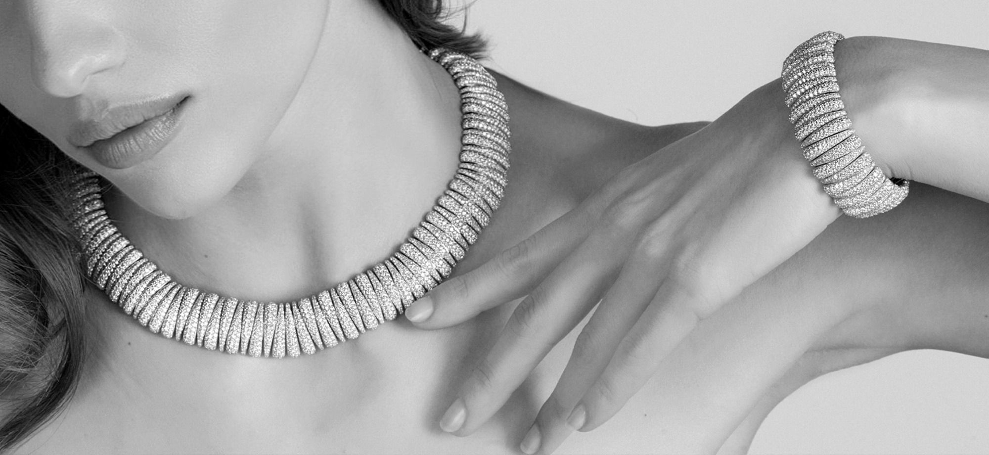 Collana artiglio S ceramica nera satinata con 3 ciuffi di artigli (6 misura S, 3 misura L) diamanti bianchi oro bianco + 6 artigli diamanti bianchi oro bianco misura S