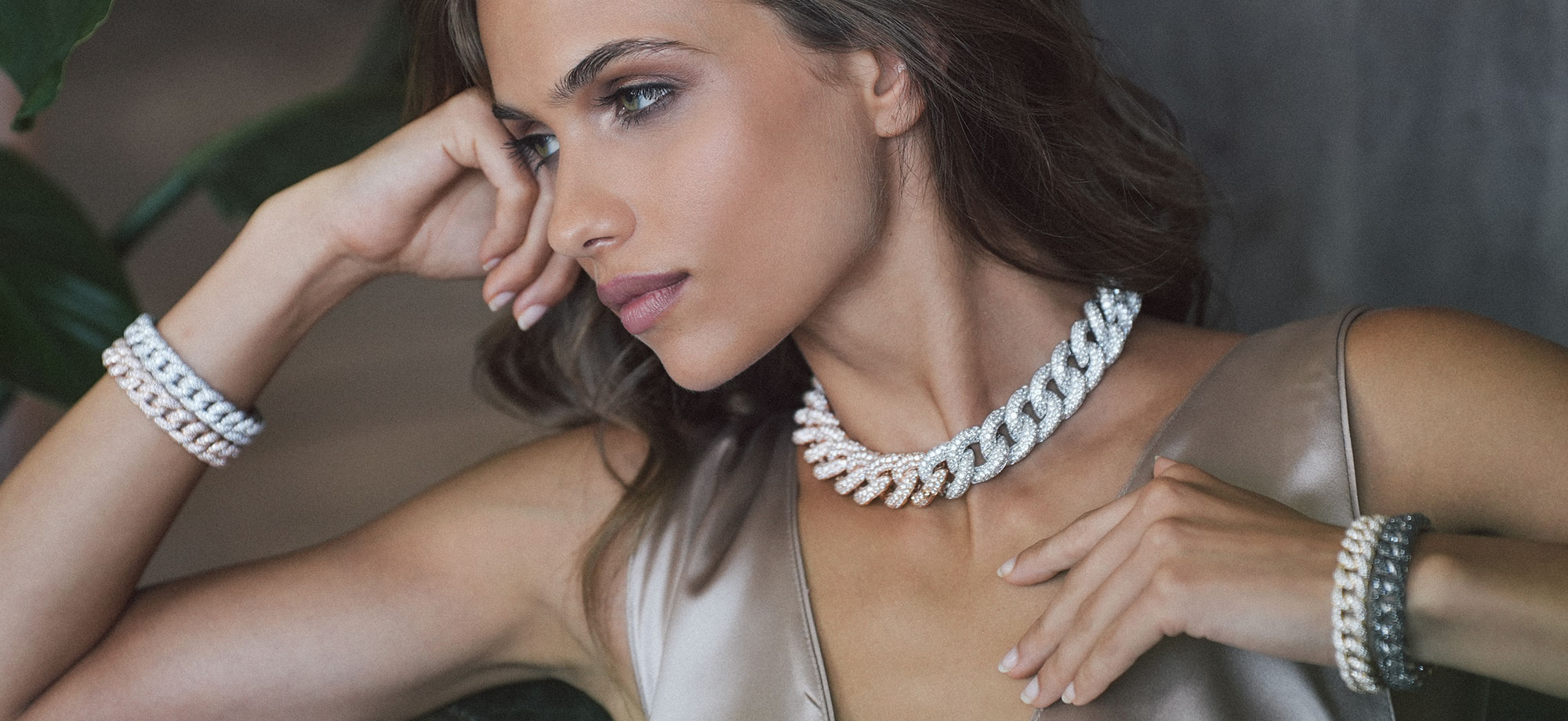 Collana artiglio S oro rosa con 3 ciuffi diamanti bianchi oro bianco (2 misura S, 1 misura L) più 6 artigli misura S diamanti bianchi oro bianco