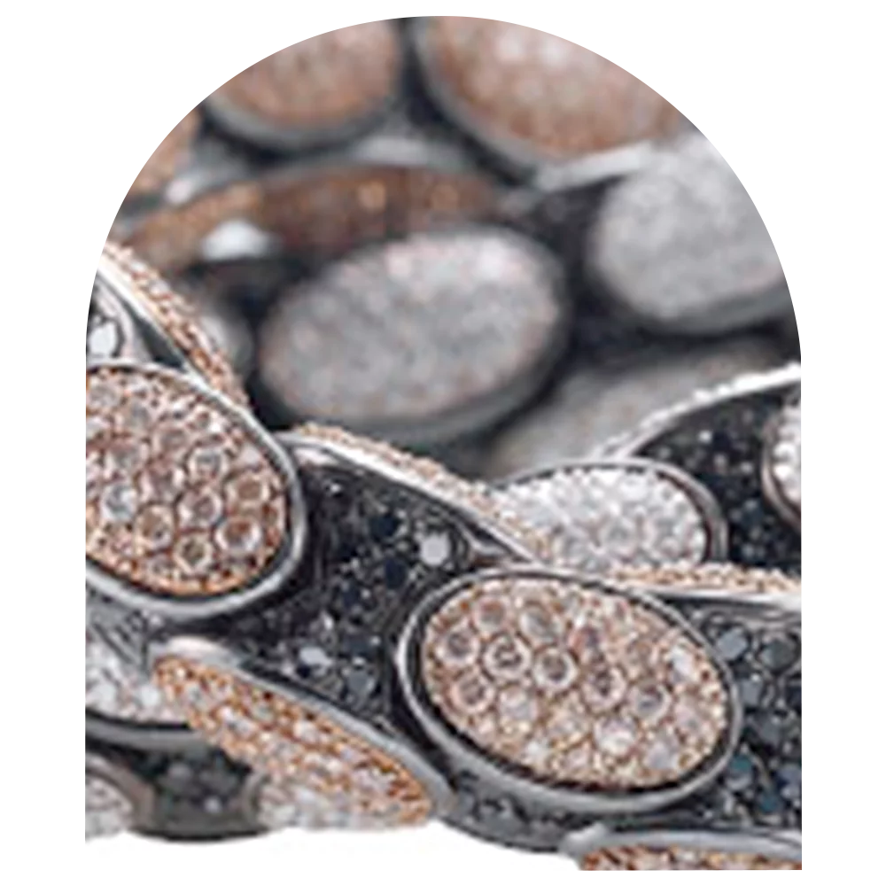 La molla rende il gioiello flessibile e delicato. Il gioiello è un prezioso strato di diamanti che si adatta totalmente al polso.