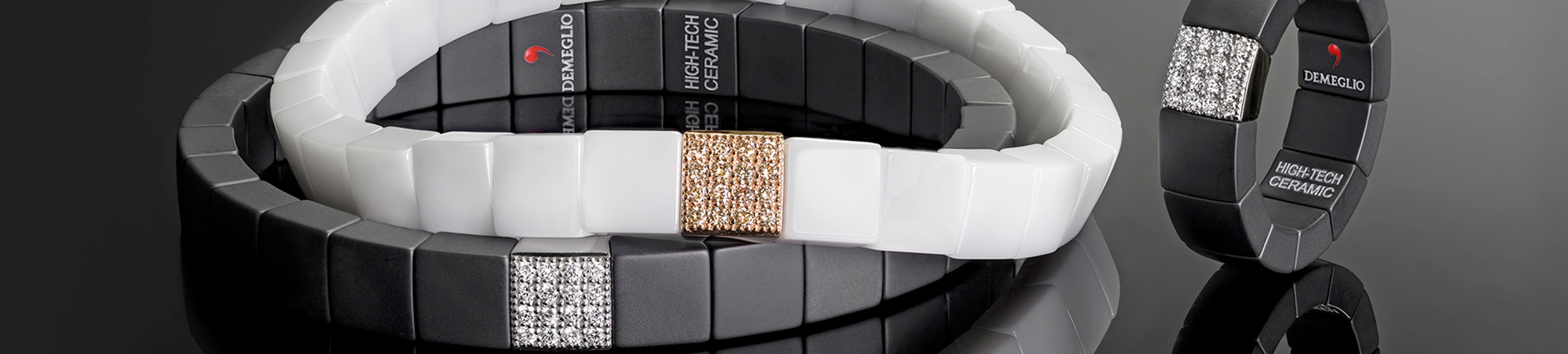 Scacco black polished ceramic bracelet with 3 white diamonds white gold element